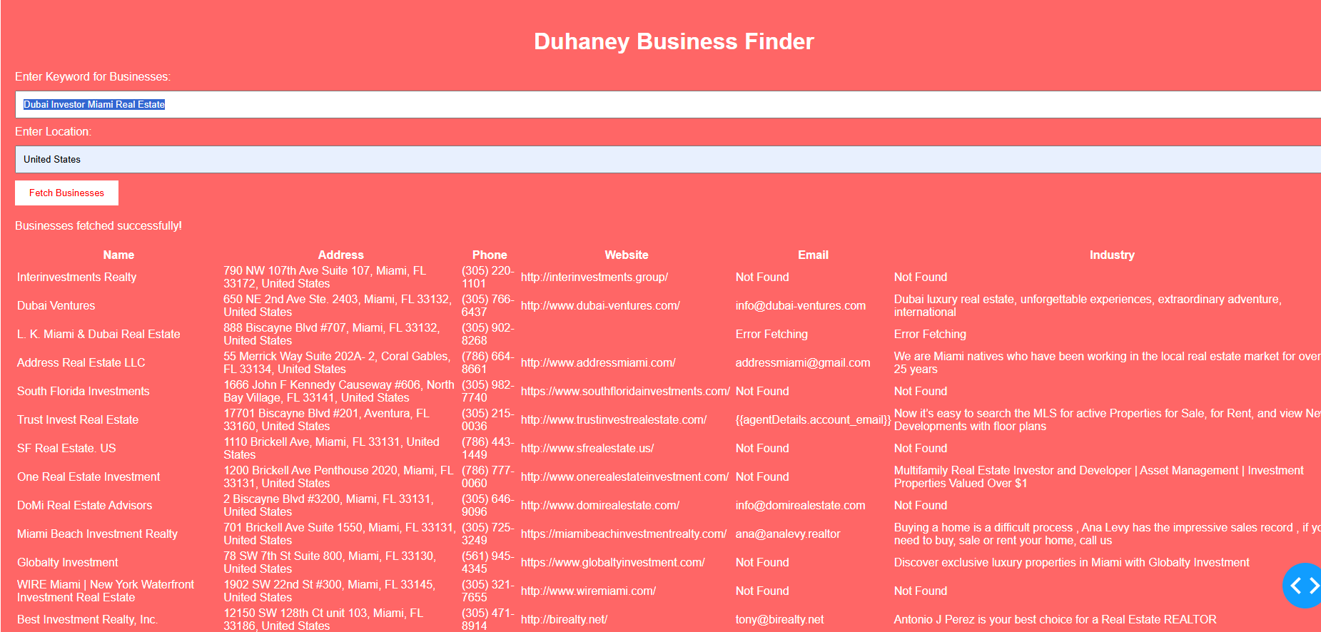 Connect instantly with verified businesses across any industry. Bulk listings show everything: name, contact info, websites, industry — ready for networking, deal-making, and scaling up. Ideal for entrepreneurs, pros, agencies, even governments.